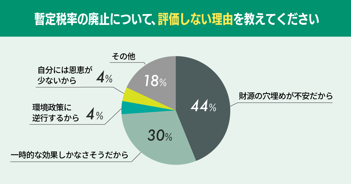 暫定税率の廃止を「評価する」理由として多く挙がったのは 「⾧年の課題がやっと動いたから」