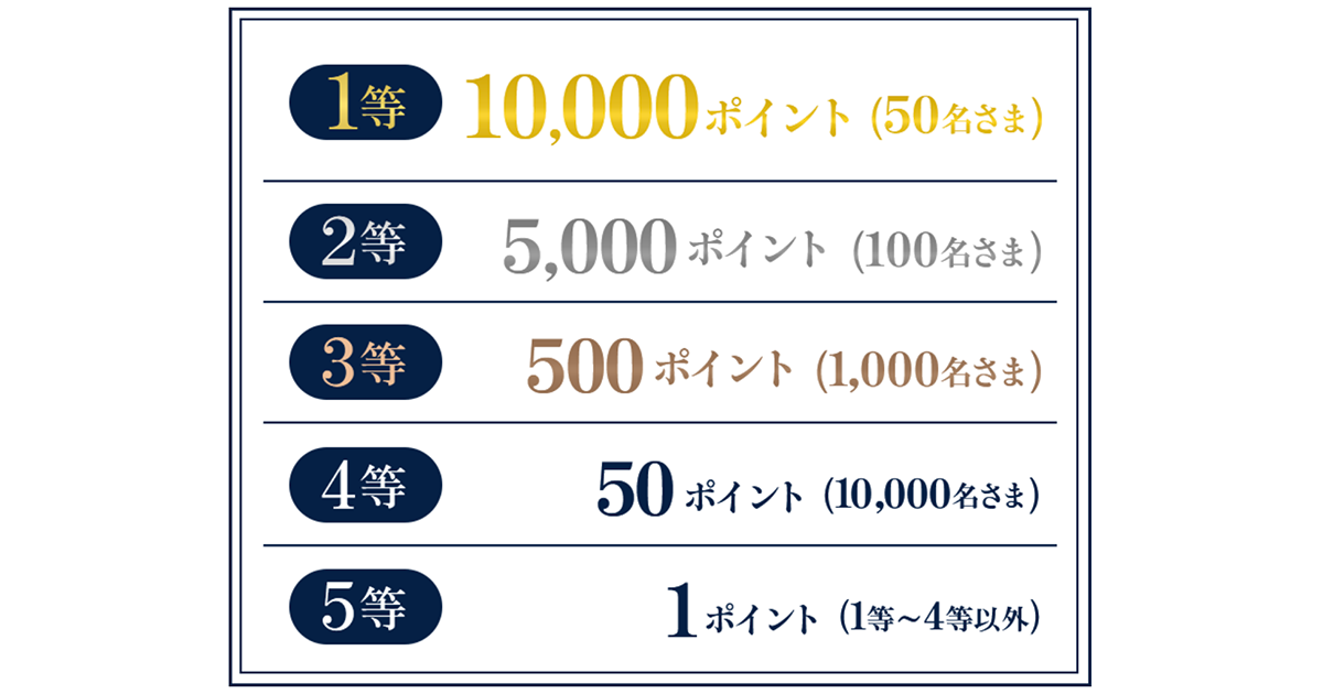 1等の10,000ポイントは50名様にプレゼント。