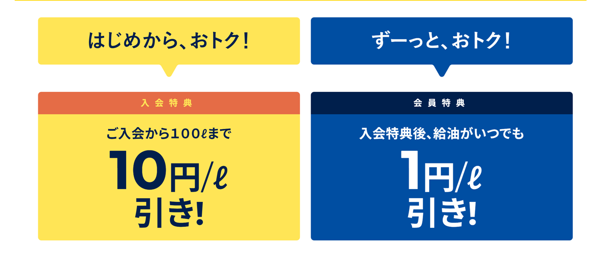 ガソリン・軽油・灯油 合計100Lまで 請求時に10円/L値引き