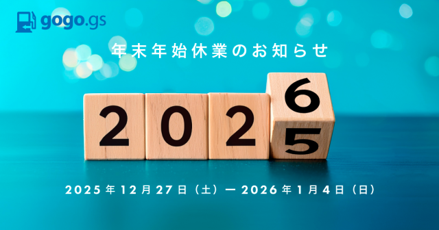 gogo.gs事務局は、2025年 12月 27日(土) ~ 2026年 1月 4日(月)まで年末年始休業をさせていただきます。