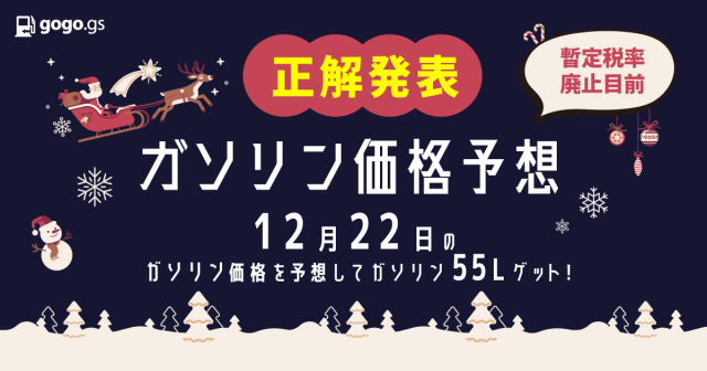 ガソリン価格を予想して、ガソリン55Lをゲットする【ガソリン価格予想】。ついに正解発表の日を迎えました!ガソリン価格予想正解発表 および 正解者 & プレゼント当選者の発表を行います。